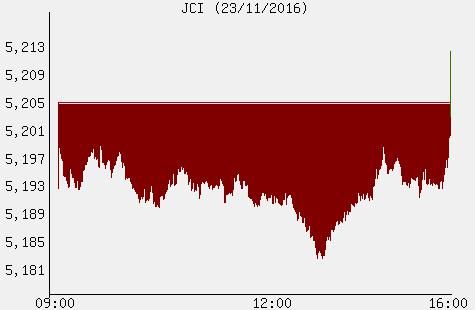 2016-11-23 Wednesday 12:29:50 Market Break: Regional Variatif, IHSG Tergerus 12 Poin Ipotnews - Indeks Harga Saham Gabungan (IHSG) melemah pada rehat perdagangan hari Rabu (23/11). IHSG drop -0,23% (-12,14 poin) ke posisi 5.192,53 poin.