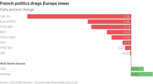 The French news has weighed on broader European stocks, with the pan-continental STOXX 600down 0.4%.